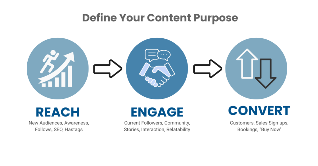 Three key purposes of content are to reach people, get them to interact with it, and get them to buy something. Your outcomes might not be evident if you don’t know what you want to do.